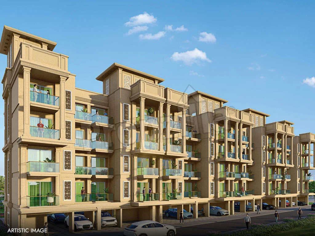 The project offers spacious 2 BHK and 3 BHK premium floors with private terraces and stilt parking.